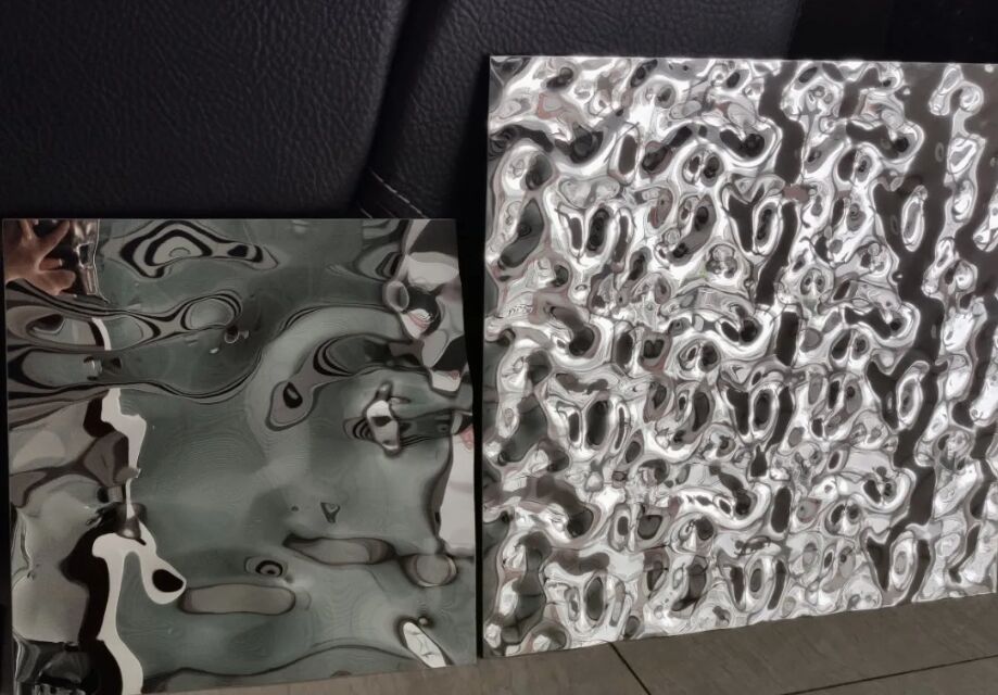 1) Płytka ze stali nierdzewnej z falami wodnymi, jak sama nazwa wskazuje,wzorce powierzchni płyty ze stali nierdzewnej przypominają falę wodną / falę wodną, z wysoce dekoracyjnymi cechami w projektowaniu wnętrz,architektura.